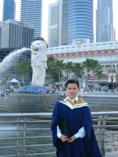 with mr merlion. see he (aka mr merlion) always putting on a smile! btw is merlion male or female? O.o